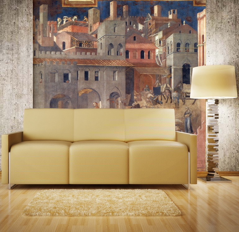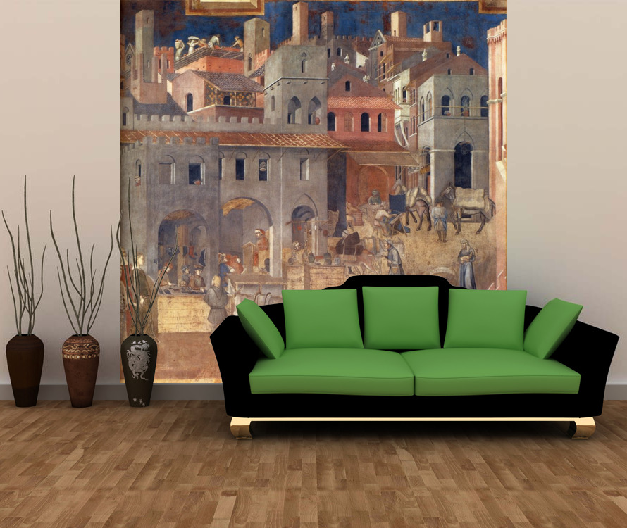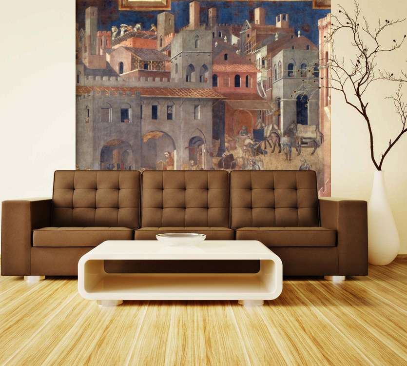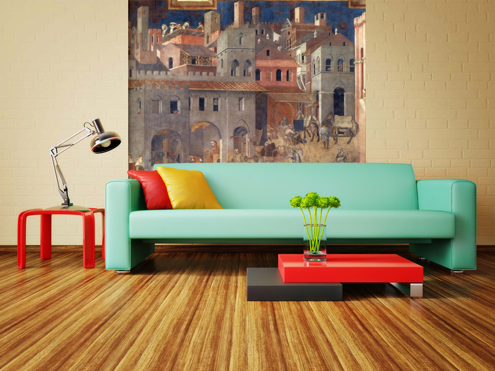 Флизелиновые фотообои с ПВХ-покрытием (виниловые фотообои на флизелиновой основе). Фактура  фреска.Материал пожаробезопасен и может использоваться в помещениях с повышенными требованиями пожарной безопасности. Плотность фотообоев изготовленных из данного материала составляет : 300 гр/м²