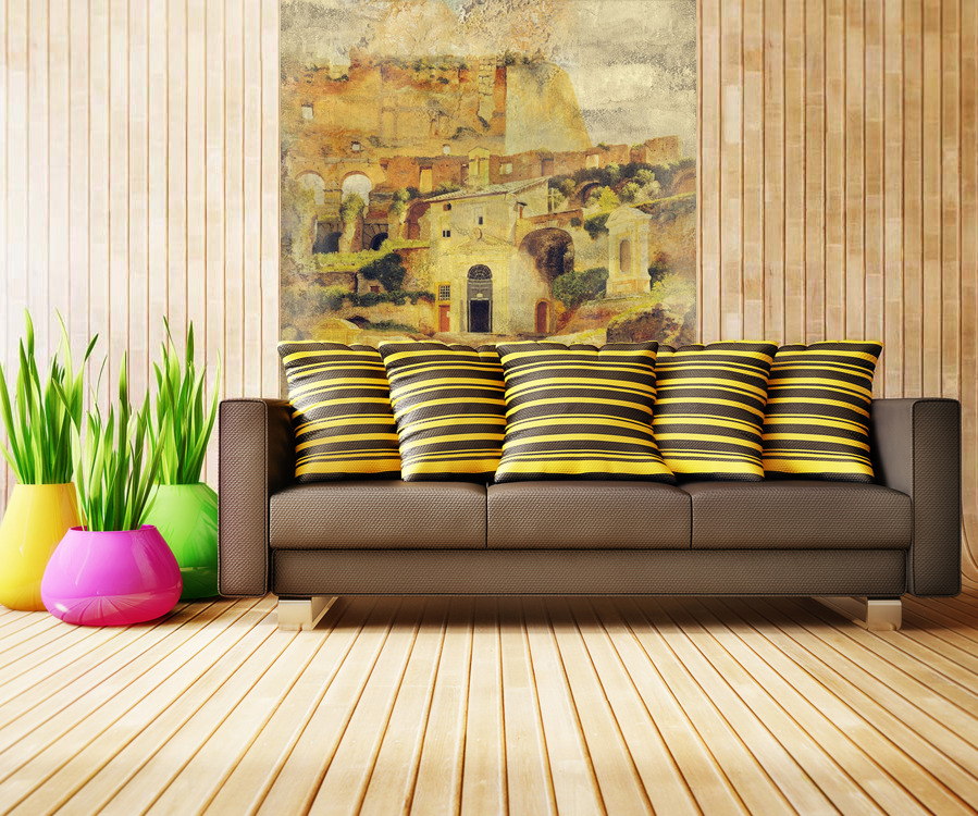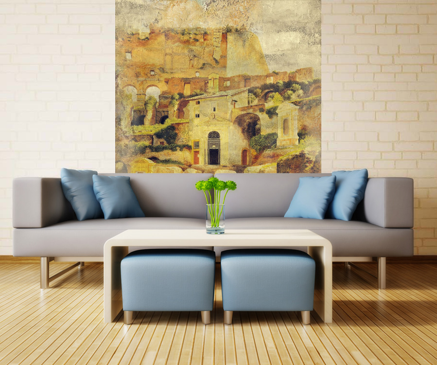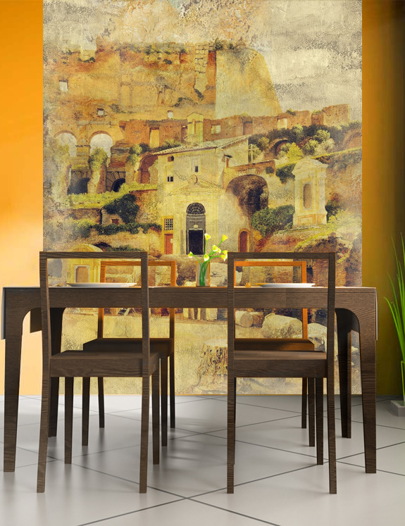 Флизелиновые фотообои с ПВХ-покрытием (виниловые фотообои на флизелиновой основе). Фактура  фреска.Материал пожаробезопасен и может использоваться в помещениях с повышенными требованиями пожарной безопасности. Плотность фотообоев изготовленных из данного материала составляет : 300 гр/м²