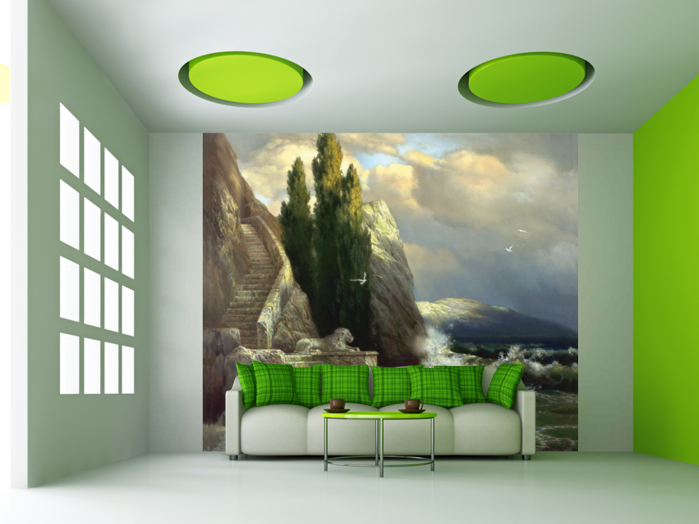 Флизелиновые фотообои с ПВХ-покрытием (виниловые фотообои на флизелиновой основе). Фактура  фреска.Материал пожаробезопасен и может использоваться в помещениях с повышенными требованиями пожарной безопасности. Плотность фотообоев изготовленных из данного материала составляет : 300 гр/м²