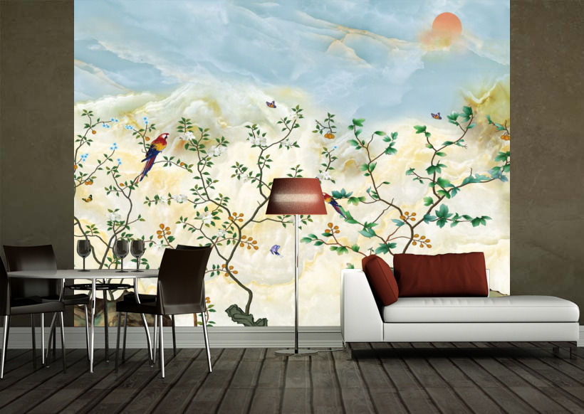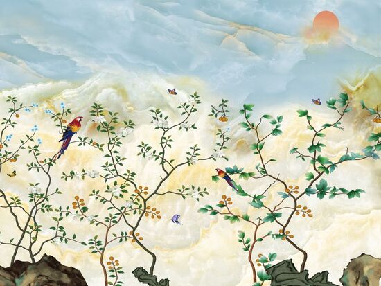 Флизелиновые фотообои с ПВХ-покрытием (виниловые фотообои на флизелиновой основе). Фактура  фреска.Материал пожаробезопасен и может использоваться в помещениях с повышенными требованиями пожарной безопасности. Плотность фотообоев изготовленных из данного материала составляет : 300 гр/м²