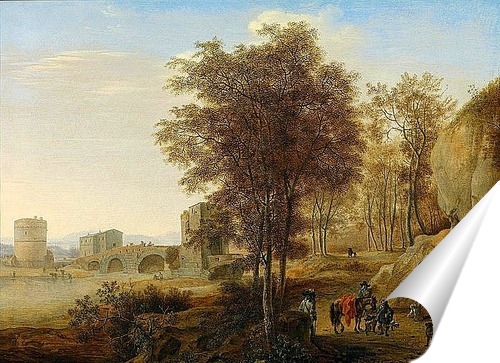 Плакат "Путешественники на Понте Лукано над Анио в Тиволи"