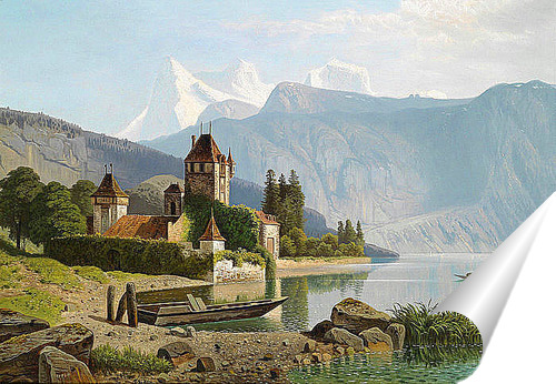 Плакат "Замок Оберхофен на озере Тун, Швейцария"