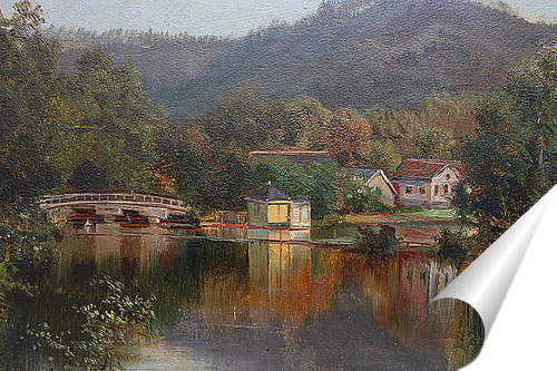 Плакат "Озеро.Пейзаж с мостом"