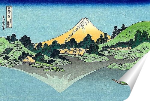 Плакат "Отражение Фудзи на поверхность воды, вид горы Мисака в Косю"