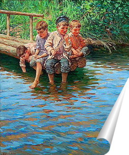Плакат "МАЛЬЧИКИ НА РЫБАЛКЕ"