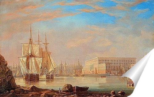 Плакат "Вид на пристань и Стокгольмский королевский дворец"