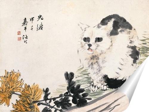 Плакат "Хризантема и кошка"