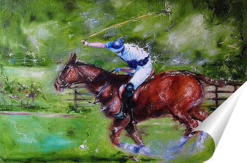 Описание плаката картина в технике холст/масло с изображением конного спорта (поло)