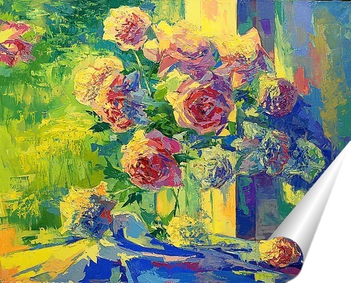 Картина сначала типографским способом переносится на холст, получается "тусклый" отпечаток низкого разрешения , затем художник расписывает ее маслом. Роспись выполняется поверх контура изображения на хлопковом холсте. Холст заполняется маслом не менее чем на 80% поверхности , при этом техника Автора может не выдерживаться, допустимы отклонения в оттенках. Срок изготовления 6-7 рабочих дней . Роспись художником это наиболее оптимальное соотношение цена/качество.