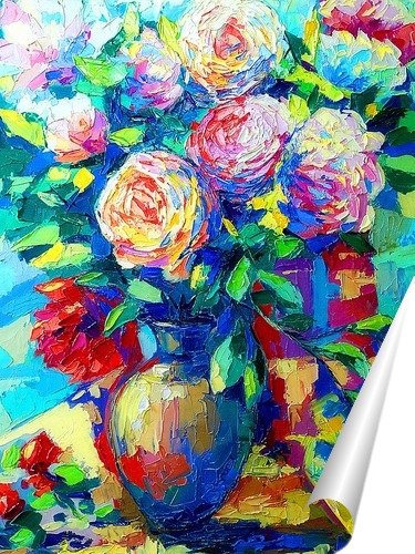 Картина сначала типографским способом переносится на холст, получается "тусклый" отпечаток низкого разрешения , затем художник расписывает ее маслом. Роспись выполняется поверх контура изображения на хлопковом холсте. Холст заполняется маслом не менее чем на 80% поверхности , при этом техника Автора может не выдерживаться, допустимы отклонения в оттенках. Срок изготовления 6-7 рабочих дней . Роспись художником это наиболее оптимальное соотношение цена/качество.
