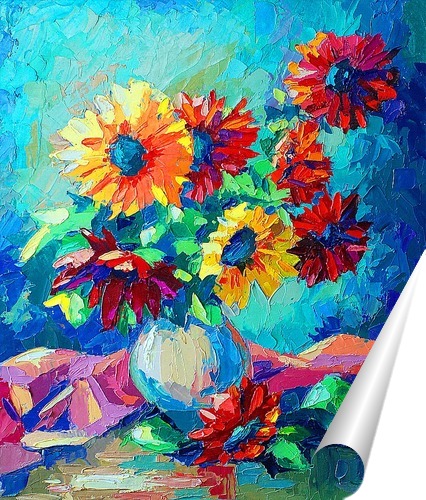 Картина сначала типографским способом переносится на холст, получается "тусклый" отпечаток низкого разрешения , затем художник расписывает ее маслом. Роспись выполняется поверх контура изображения на хлопковом холсте. Холст заполняется маслом не менее чем на 80% поверхности , при этом техника Автора может не выдерживаться, допустимы отклонения в оттенках. Срок изготовления 6-7 рабочих дней . Роспись художником это наиболее оптимальное соотношение цена/качество.