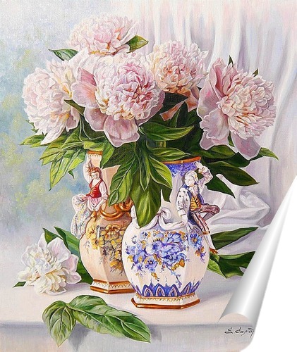 Описание плаката Цветочный натюрморт в пастельных тонах, нежно розовых оттенков, достойный сюжет для спальной или кухни. Освежит гостиную.