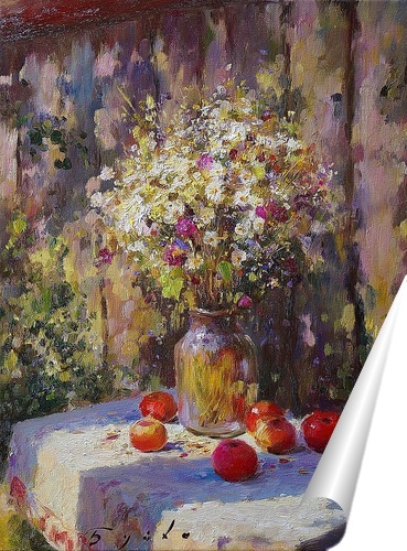 Картина сначала типографским способом переносится на холст, получается "тусклый" отпечаток низкого разрешения , затем художник расписывает ее маслом. Роспись выполняется поверх контура изображения на хлопковом холсте. Холст заполняется маслом не менее чем на 80% поверхности , при этом техника Автора может не выдерживаться, допустимы отклонения в оттенках. Срок изготовления 6-7 рабочих дней . Роспись художником это наиболее оптимальное соотношение цена/качество.