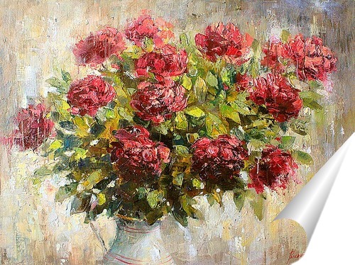 Картина сначала типографским способом переносится на холст, получается "тусклый" отпечаток низкого разрешения , затем художник расписывает ее маслом. Роспись выполняется поверх контура изображения на хлопковом холсте. Холст заполняется маслом не менее чем на 80% поверхности , при этом техника Автора может не выдерживаться, допустимы отклонения в оттенках. Срок изготовления 6-7 рабочих дней . Роспись художником это наиболее оптимальное соотношение цена/качество.