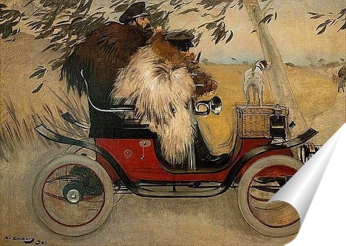 Плакат "Рамон Касас и Пере Ромеу в автомобиле "