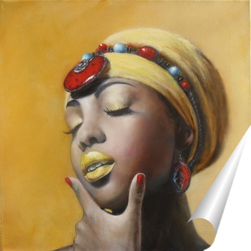 Описание плаката Картина, написанная в технике холст/масло с изображением африканской девушки. На картине изображены женские эмоции. Картина хорошо впишется в интерьер спальни квартиры или загородного дома.