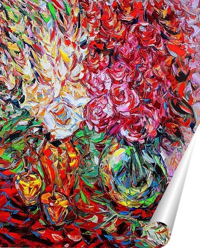 Описание плаката Розы, натюрморт с розами,цветы на столе,натюрморт с цветами,красивые цветы, пышные розы.Эти слова может сказать человек,который увидит данные цветы во всей красоте на данной работе.И они несомненно не оставят равнодушными ни одного человека, который