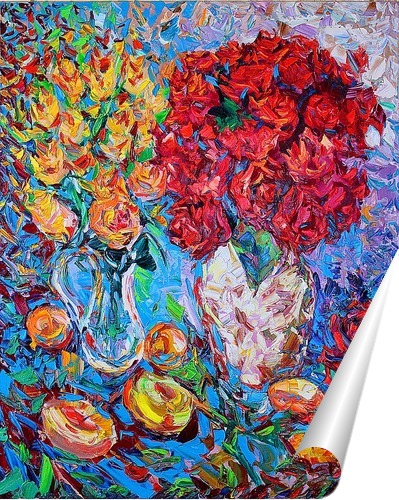 Описание плаката Розы, натюрморт с розами,цветы на столе,натюрморт с цветами,красивые цветы, пышные розы.Эти слова может сказать человек,который увидит данные цветы во всей красоте на данной работе.И они несомненно не оставят равнодушными ни одного человека, который