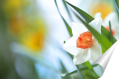 Описание плаката Нарци?сс (лат. Narcissus) — род однодольных растений из семейства амариллисовых. Это травы, снабжённые плотными луковицами и лентообразными различной ширины листьями. Цветы сидят на верхушках безлистных стеблей, одетых плёнчатой поволокой, по одному