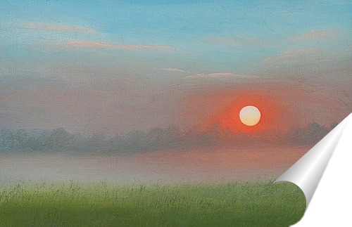 Описание плаката Основной сюжет - раннее утро на лугу. Еще стелется по траве прохладный туман, сумерки скрывают лес, но скоро восходящее солнце разогреет землю своими лучами...
