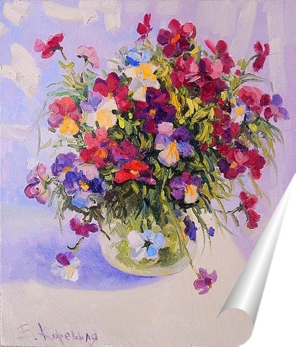 Описание плаката Апрель золотыми лучами обласкан. С лужайки плывёт аромат. Анютины глазки из были и сказки На мир удивлённо глядят. Эта картина будет прекрасным ярким пятном в Вашей гостинной.