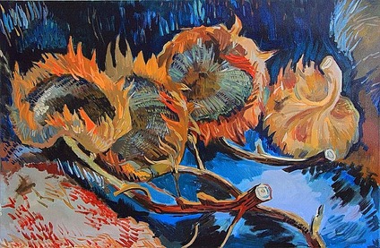 Описание плаката 90х60 см. Холст, масло. 2009 г. "Брызги солнечного света Я держу в своих руках, Ведь подсолнух — символ лета, Отражается в глазах..." (М. Куншт) Картина символизирует знойное лето. Была написана под впечатлением от жаркой погоды, стоящей летом 2009 г