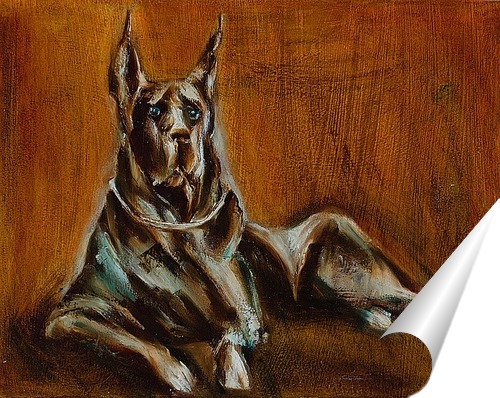 Описание плаката Картина "Дог". - верный и серьезный пес, может напомнить Вам Вашего любимца. Животные придают комнате уют и создают приятную атмосферу. Картина поможет Вам разнообразить интерьер и привлечь внимание гостей.