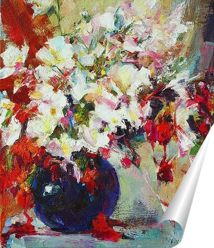 Описание плаката авторская копия живописной работы Николая Фешина- крупнейшего представителя русского импрессионизма начала 20 века. Мастера характеризует широкая манера письма,и виртуозная техника исполнения натюрмортов с цветами .