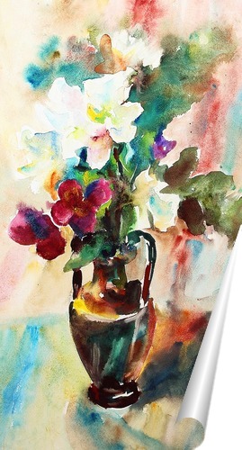 Описание плаката Картина Магнолии в вазе выполнена в технике акварель по мокрому листу аля прима. Работа в стиле импрессионизм, ощущение впечатления, мгновения, размытости образа.