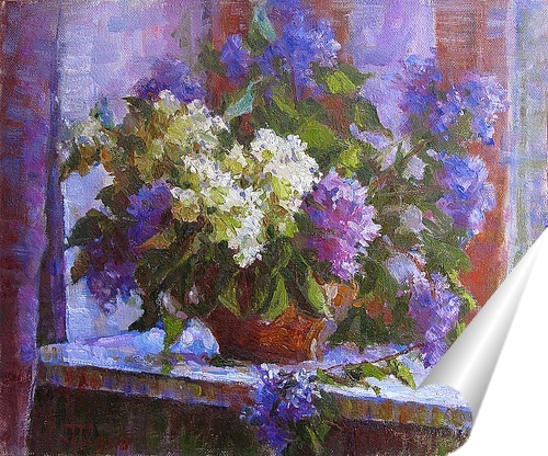 Описание плаката Я поставил букет сирени в горшке на подоконник для создания эффекта большого света и получения за счёт этого более наглядного объёма букета. Мне кажется, что это вполне удалось