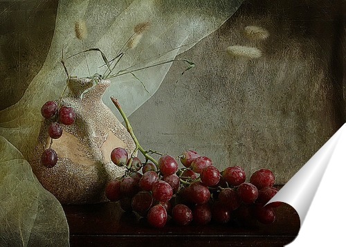 Описание плаката Винограда беру спелого гроздь, Солнцем согретую, соком налитую... Каждую ягодку вижу насквозь, Светом пронзённую - тёплой сюитою. Светлою каплей янтарною пир Вкуса божественных ягод начавшийся! Гроздь - создавал, явно Бог-ювелир, Смотри, к