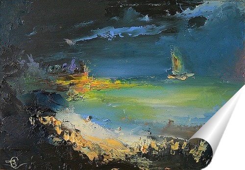 Описание плаката Картина " Ночные звуки " ( двп масло мастихин 2015 год размер 21 см на 30 см ) Художник Столяров Вадим Анатольевич.