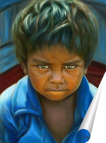 Описание плаката Главное в этой авторской картине художника - это взгляд мальчика, оставляющий в сердцах зрителей яркий след. Каждый видит что-то свое в этом портрете, возможно - отражение себя. Но равнодушных нет!