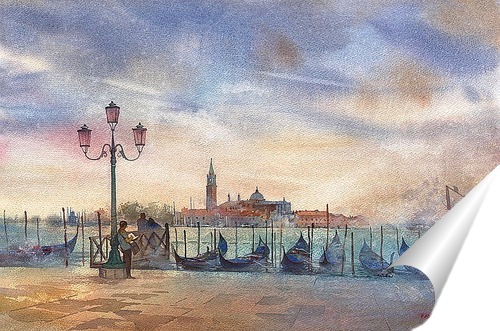 Описание плаката Бумага, акварель. Работа написана после двухнедельного путешествия по Италии в 2013 г. Один из самых известных видов Монастыря святого Георгия Победоносца на острове Сан Джорджио Маджоре