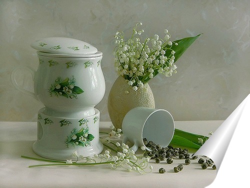 Описание плаката ... Ты протянул мне очень бережно сегодня Жемчужных ландышей сияющий букет... Лесных фонариков... Воздушных... Грациозных... Впитавших солнечной весны тепло и свет... ... Я зачарованно смотрю на это чудо, Лаская взглядом колокольчики весны...
