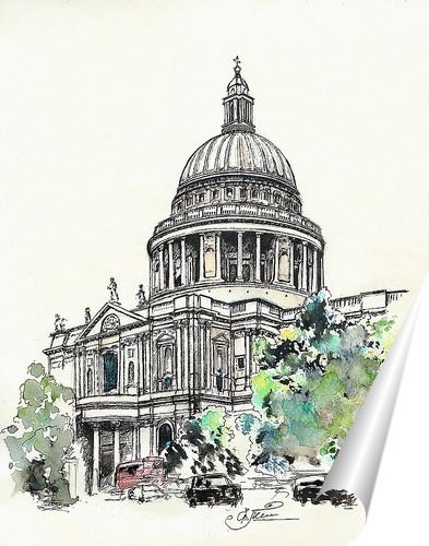 Описание плаката Изображение этой достопримечательности Лондона под таким ракурсом делает архитектурный пейзаж живым и динамичным. А сам Собор, выполненный в стиле барокко, приковывает взгляд своими мелкими деталями.