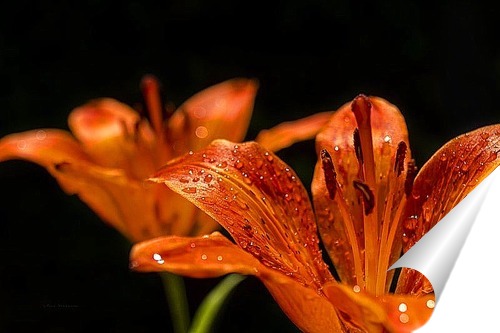 Описание плаката В тёплый июньский вечер прошёл дождь. Краски природы отряхнулись от пыли и стали насыщенными. Цветок лилии бережно сохранил капли дождя на своих лепестках.