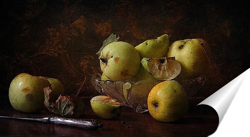 Описание плаката Грустит антоновка в саду, Плоды созревшие роняя. Сентябрь. А сердце не в ладу С календарем. И жаждет мая. Платок зеленый кружевной Изрядно выгорел в июле. Ах, если б тот, что был весной, Ветра осенние вернули! Вернули свет далеких снов И