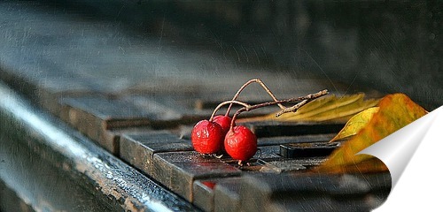 Описание плаката Стоял в саду рояль под старым клёном. Как много рук касались его клавиш! А клён, совсем недавно был зелёным, Теперь его с трудом таким представишь. Он сыпал листья под ноги роялю, Был друг-рояль премного благодарен. Он бы сыграл… о, если б сл