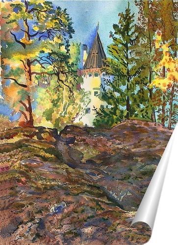 Описание плаката акварель написана в заповеднике г. Иматра, Финляндия, с натуры (и немного сказочного настроения) вид на Иматран валтионхотелли (Гостиница была построена в 1903 году по проекту архитектора Уско Нюстрома на месте двух небольших деревянных отелей для