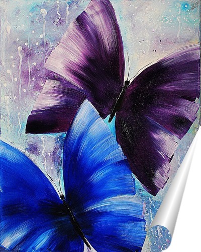 Описание плаката Две большие, легкие бабочки летят вверх . К свету . Яркая картина украсит комнату, привлечет взгляды окружающих. Яркий акцент в помещении.Картина дарит ощущение легкости и нвесомости.