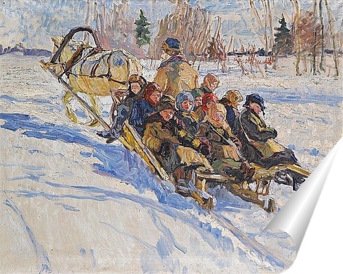 Плакат "Дети верхом на санях"