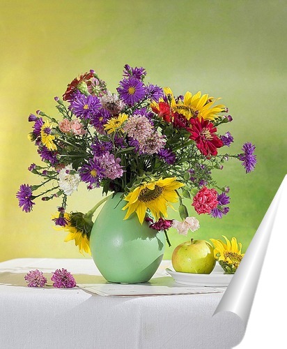 Описание плаката Слово «натюрморт» пришло в русский язык из французского в конце XIX в. Натюрморт – это термин, используемый в живописи и означающий «изображение группы предметов, таких как цветы, фрукты, рыба и тому подобное»