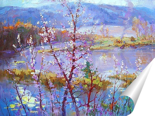 Описание плаката Вид на Волгу, ветка расцветающего абрикоса, свежий весенний воздух. Всё пробуждается в природе, Всё живёт ожиданием чего-то нового, доброго, красивого