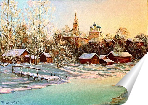 Описание плаката Пейзаж "Зимнее утро" не оставит Вас равнодушными. Только взглянув на картину Вы сразу ощутите атмосферу раннего, зимнего, морозного утра. Художник Роман Федосенко