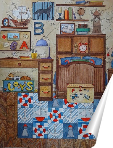 Описание плаката Острова в океане - олицетворение грёз юных мечтателей. В душе каждого мальчика живёт жажда приключений, дальних странствий и свершения подвигов. Насыщенный и живой рисунок интерьера прекрасно подойдет для детской комнаты мальчика. Материал - акварель