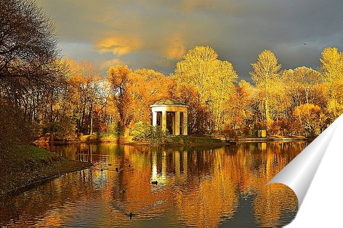 Описание плаката Снято в старом парке Екатерингоф города Санкт-Петербург. Фотография сделана за полчаса до захода солнца! Приходилось поторапливаться - с одной стороны солнце уже заходило, а с другой набегала черная туча!