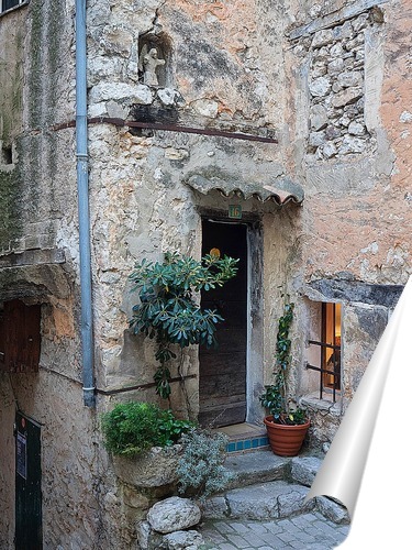 Описание плаката Дворик в Турет-сюр-Лу. Тихая Франция небольших городков, горных деревушек, каменных улочек и уютных кафешек постепенно раскрывает перед вами свой шарм и очарование, маня вернуться...