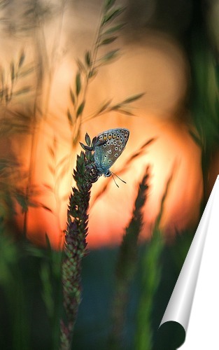 Описание плаката Однажды утром не спалось, поэтому решил пойти фотографировать. Едва перед восходом солнца наконец нашел бабочку, ею оказалась эта голубянка Икар (Polyommatus icarus).