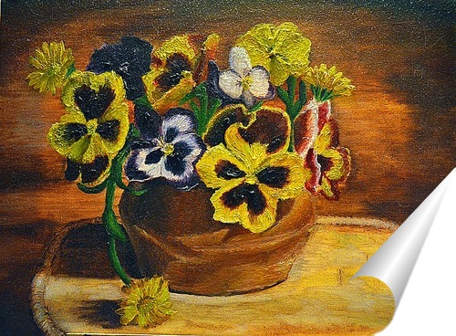 Описание плаката Год создания этой картины 2014, написана маслом на холсте. Размеры: картины 30*40 см. На картине изображены одни из моих любимых цветов - анютины глазки.